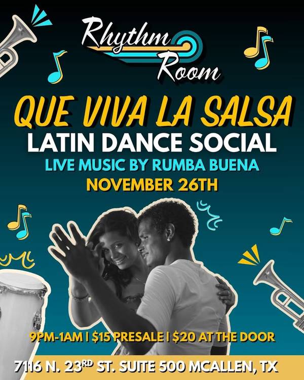 The evening kicks off with a Bachata class at 9:30 PM, followed by social dancing featuring salsa and bachata in a welcoming, high-energy atmosphere.